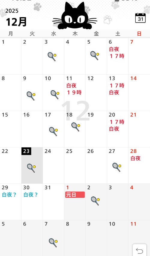 明日17時から出勤予定です